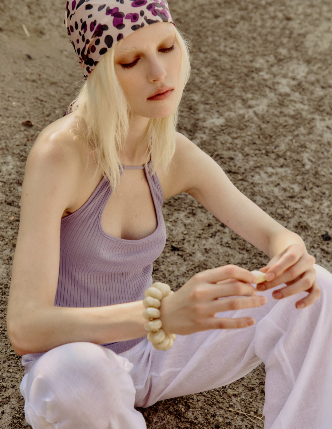 A luminous palette inspired by nature, from Vanilla, Pistachio, Lavender and Aqua to pure whites, Beige and warm Brownie tones, creates a soft, ethereal atmosphere where each piece is designed to move effortlessly through the day.